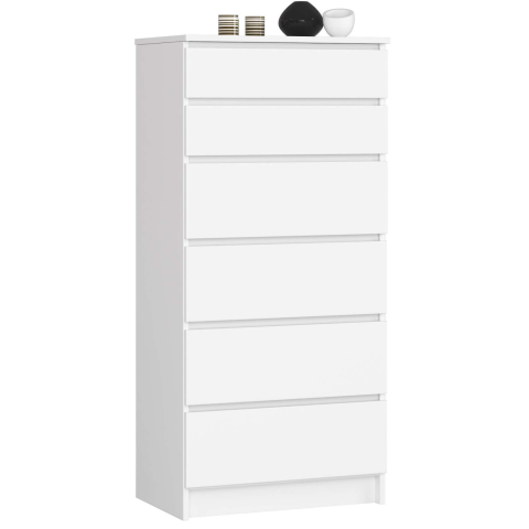 Teljes AKORD Furniture Factory 6 fiókos komód P130_60 - fehér termékleírás
