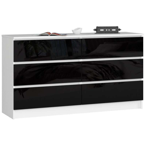 AKORD Furniture Factory 6 fiókos komód P77_138 - fehér/fekete fényes bútor termékleírás