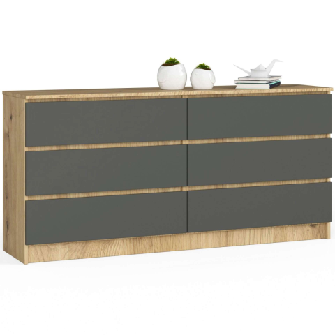 1 kép AKORD Furniture Factory 6 fiókos komód P77_160 - tölgy/grafitszürke