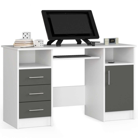 ANA Íróasztal: Stílusos és praktikus dolgozószoba bútor 124 cm-es méretben Ez a modern, fehér és grafitszürke színkombinációjú íróasztal tökéletes választás otthoni vagy irodai használatra. A 124 cm-es szélességével elegendő helyet biztosít a munkáho...