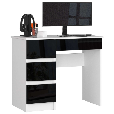 1 kép AKORD Furniture Factory Balkezes íróasztal P77_90 - fehér/fényes fekete