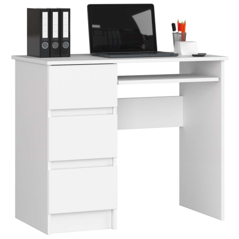 1 kép AKORD Furniture Factory Balkezes számítógépasztal, 3 fiókkal P77_90 - fehér