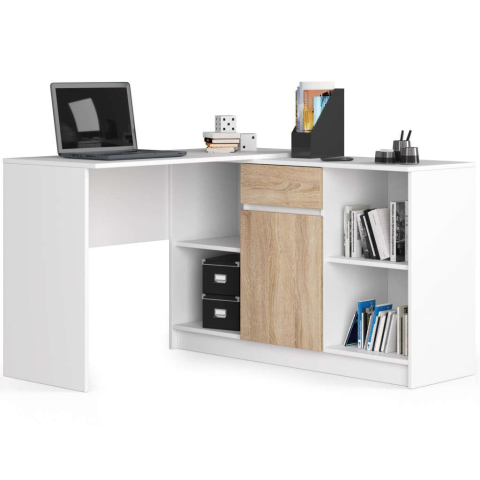 CLP B-17 Sarokíróasztal szett: Tökéletes munka- és tanulósarok 💻 Ez a praktikus és stílusos sarokíróasztal szett tökéletes megoldás a hatékony munkavégzéshez és tanuláshoz. A fehér és sonoma tölgy színkombinációja modern és elegáns megjelenést kölcs...