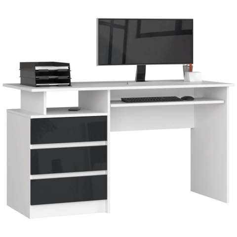 1 kép AKORD Furniture Factory CLP ÍRÓASZTAL 135cm FEHÉR / GRAFIT MAGASFÉNYŰ