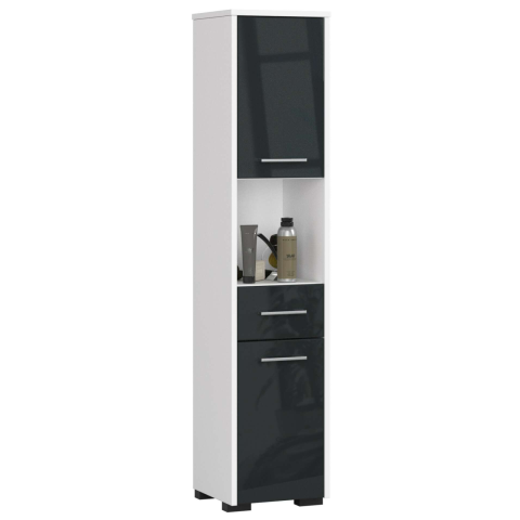 Fürdőszoba Szekrény: Elegáns Tárolás Kicsi Térre 🛁 Ez a stílusos és praktikus fürdőszoba szekrény tökéletes megoldás kisebb fürdőszobákba, ahol a hely korlátozott. A modern, fehér és grafit fényű dizájnnal bármilyen fürdőszobába illeszkedik. Főbb je...