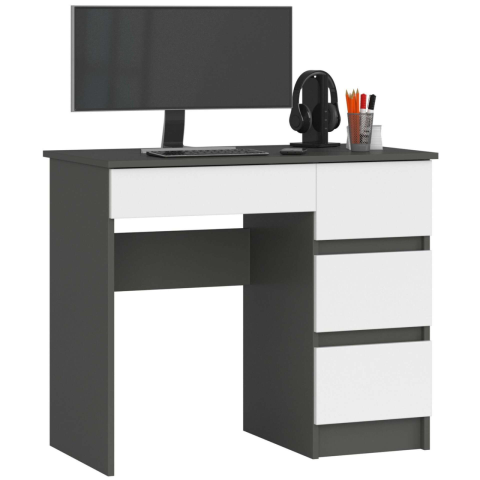 1 kép AKORD Furniture Factory Jobbkezes íróasztal 3 fiókal P77_90 - grafitszürke/fehér