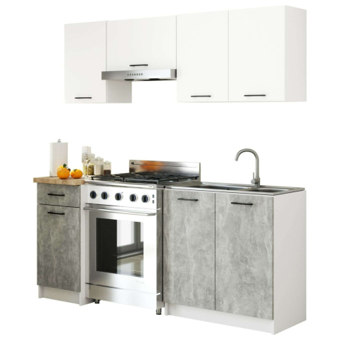 Olivia Konyhabútor szett: 180 cm-es modern konyha beton és fehér színben Ez a stílusos és praktikus Olivia konyhabútor szett tökéletes választás kis konyhákba is. A beton és fehér színkombináció modern megjelenést kölcsönöz, míg a Sonoma tölgy munkal...