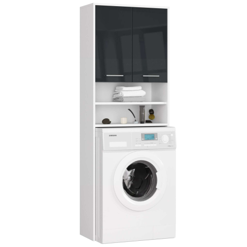 Mosógép fölé szerelhető fürdőszobabútor: extra tárolóhely a fürdőszobába 🛁 Ez a praktikus fürdőszobabútor tökéletes megoldás a mosógép feletti hely kihasználására, extra tárolóhelyet biztosítva a fürdőszobában. A fehér és fényes grafit színkombináci...