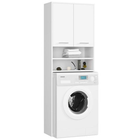 Mosógép feletti fürdőszobabútor: Tökéletes helykihasználás és elegáns megjelenés ✨ Ez a fehér mosógép feletti szekrény ideális megoldás a fürdőszobai helytakarékosságra és a tárolókapacitás növelésére. A modern dizájn és a praktikus kialakítás tökél...