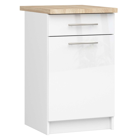 AKORD Furniture Factory OLIVIA Alsó Konyhaszekrény munkalappal P85_50 - fényes fehér bútor termékleírás
