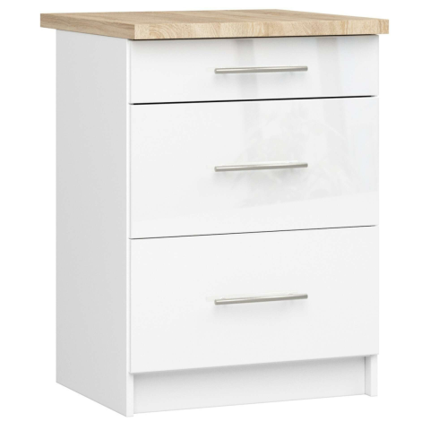 AKORD Furniture Factory OLIVIA Fiókos Konyhaszekrény munkalappal P85_60 - fényes fehér bútor termékleírás