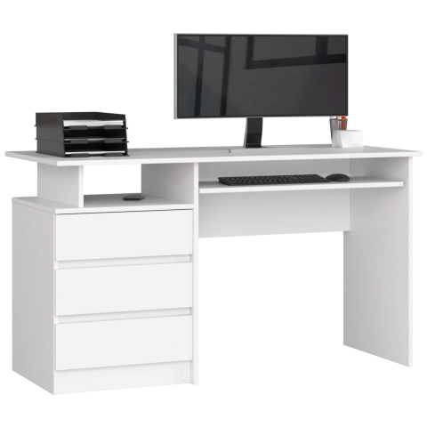 AKORD CLP Íróasztal - Fehér, 135 cm: Tág terű, modern íróasztal otthonra és irodába 💻 Ez a fehér AKORD CLP íróasztal tökéletes választás mindazoknak, akik tágas és elegáns munkahelyet keresnek. Akár otthoni irodaként, akár játékasztalként is funkcio...