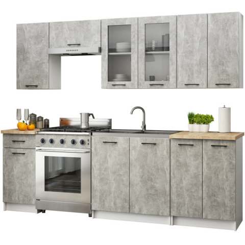 1 kép Akord Oliwia 2.4m Konyhabútor Szett Fehér-Beton Üvegvitrines