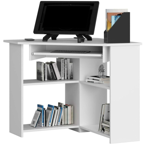 AKORD TED Sarok Íróasztal: Tárhelyes és Stílusos Munkahely 💻 Ez a fehér sarok íróasztal tökéletes választás otthoni vagy kisebb irodai használatra. Tervezése helytakarékos, ugyanakkor tágas munkafelületet és praktikus polcokat kínál. A 16 mm-es lam...