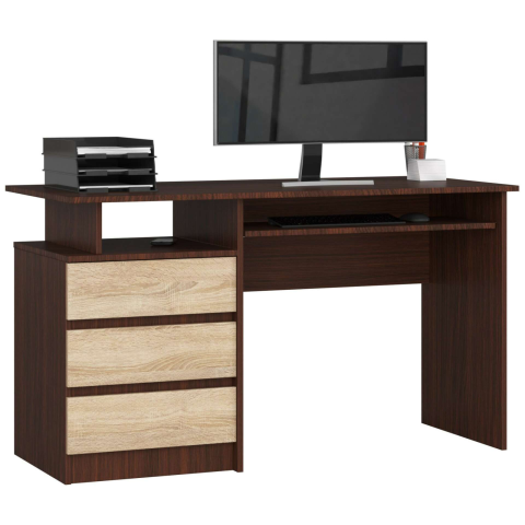 1 kép Akord Számítógépasztal 3 fiókkal P77_135 - wenge/sonoma