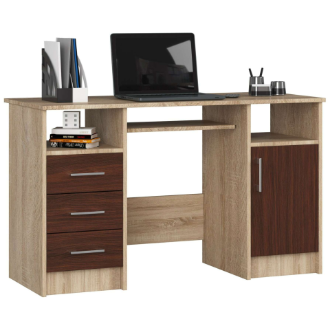 1 kép Akord Számítógépasztal, fiókkal és polccal P52_124 - sonoma/wenge