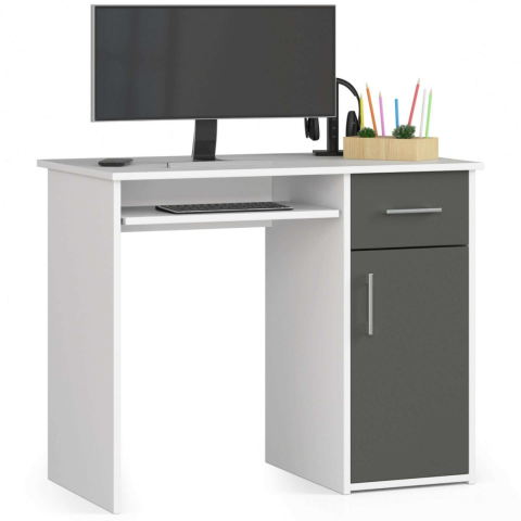 AKORD PIN Íróasztal - Fehér/Grafitszürke: Stílusos és Praktikus Munkahely 💻 Ez a modern, fehér és grafitszürke színkombinációjú AKORD PIN íróasztal tökéletes választás otthoni vagy irodai használatra. 16 mm-es laminált, kopásálló táblából készült, í...