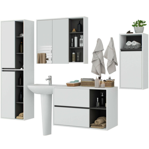 1 kép Akord VAMI Fali Fürdőszobabútor Szett Fehér/Grafit Szürke