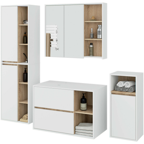 1 kép Akord VAMI Fali Fürdőszobabútor Szett Fehér/Sonoma Tölgy