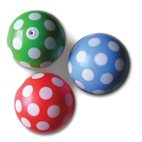 Pöttyös kidobó- és gumilabda, 12 cm-es átmérővel. Anyaga: PVC. Szelepes és újrafújható. A labda nem felfújva kerül kiszállításra! Cégünk a labdákat vegyes színekben szállítja. Amennyiben Ön a 10 db vagy 10 db feletti mennyiséget egy színből kéri, úgy
