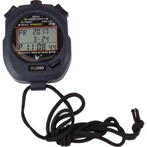 60 részidős stopperóra 3 soros kijelzővel és visszaszámláló funkcióval.Rendszeresen sportolóknak és edzőknek ajánlott, valamint iskolai tanórákhoz a pontos időméréshez.Alapvető funkciók edzéshez: stopper, visszaszámláló és a 60 részidő.A stopperórához ele