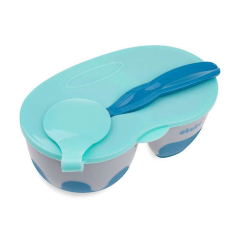 AKUKU Akuku osztott tányér kanállal - kék/szürke