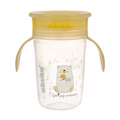 1 kép AKUKU Csöpögésmentes 360° fokos itatópohár - "I Love my Mummy" sárga