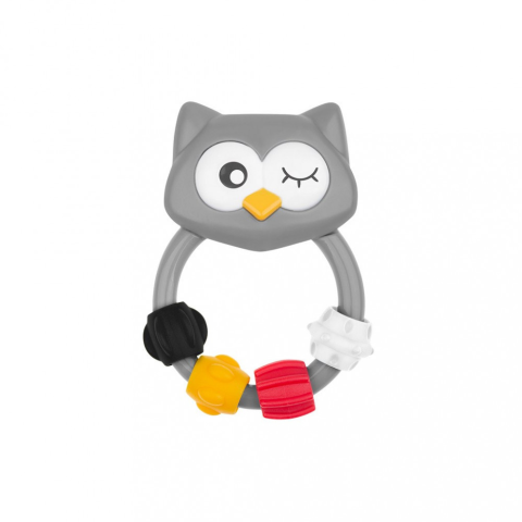 Színes csörgös bagoly játék. A játék formái és színei vonzzák a gyermek figyelmét, tanítják, szórakoztatják és fejlesztik a gyermek fantáziáját. A színes dizájnnak köszönhetöen a gyermek könnyebben fedezi fel a színek, formák és hangok világát.A játék minőségi és kényelmes anyagból készül. A termék nem tartalmaz biszfenol A-t (0% BPA).