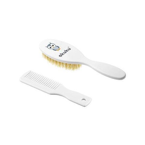 2 kép AKUKU Fésű és hajkefe természetes sörtével - bagoly, fehér