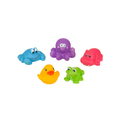 Az AKUKU fürdőjátékok szettje öt különböző, színes és lebegő játékot tartalmaz,