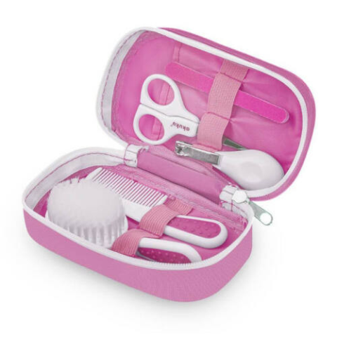 8 részes manikűr szett babaápoláshoz, kényelmes és praktikus kozmetikai táslával, rózsaszín Akuku manikűr szett hajkefével, rózsaszín 8 részes manikűr szett babaápoláshoz, kényelmes és praktikus kozmetikai táslával A szett tartalma: biztonsági