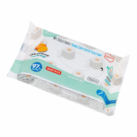 1 kép AKUKU nedves toalettpapír - mangó illattal 97% víz 50 db