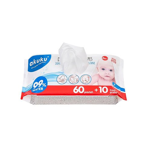 Nedves törlőkendő - gyerek, felhasználási terület: kezek és arc, alkoholmentes, összetételében 99 % víz szerepel, illatmentes, normál, érzékeny és gyermek bőrre megfelelő, 70 db a csomagban A kiváló minőségű Akuku popsitörlő a babaápolás nélkülözhetetlen kelléke. Normál bőrre. A klassz popsitörlő illatmentes, így finoman ápolja a babák bőrét. A törlőkendő óriási pozitívuma, hogy nem tart