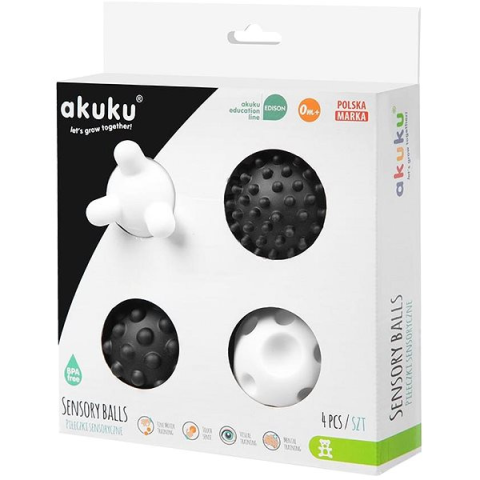 1 kép AKUKU szenzoros labdakészlet fekete-fehér 4 darab