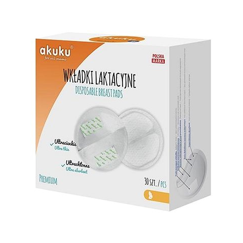 Melltartóbetét - egyszer használatos, nagy nedvszívóképesség és ragasztószalaggal, 30 darab a csomagban Az AKUKU melltartóbetéteket minden aktívan szoptató nő számára tervezték. Nagyon kellemes, természetes eredetű anyagokból készülnek, így az egész napos viselet során, még éjszaka is kényelmet biztosít