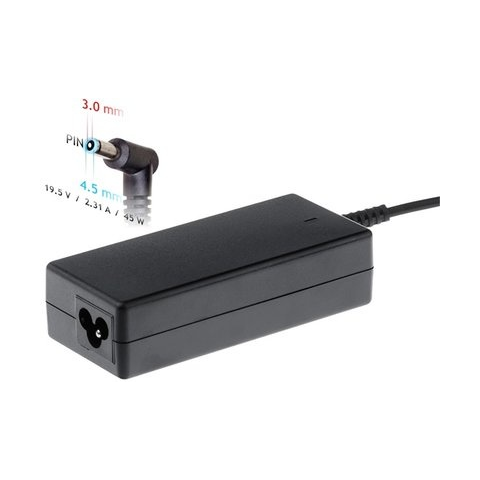 45 Wattos hálózati töltő notebookokhoz. - Kimenet: 19.5V / 2.31A - Csatlakozó méret: 4.5 x 3.0 mm + tű