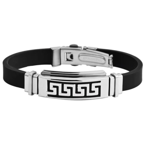 Akzent acél és szilikon karkötő görög mintával, 22 cm