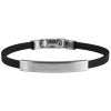 Akzent fekete-ezüst acél és valódi bőr karkötő, 21 cm II.
