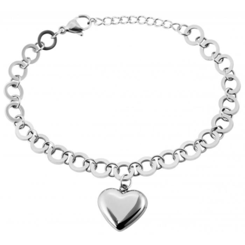 Akzent márkájú acél karkötő Szív függővel, 18+3 cm