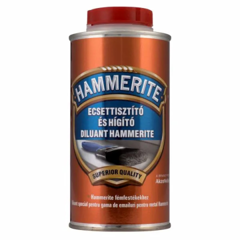A Hammerite fedőfestékkel történő festés után az eszközök tisztítására. A Hammerite Ecsettisztító – Hígítót csak festékszórós festés esetén szabad a Hammerite festék hígítására használni, mivel a festék felhasználásra kész állapotú.