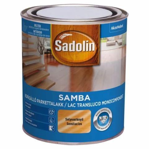Sadolin Samba kopásálló oldószeres magasfényű, vagy selyemfényű parkettalakk. Parketta és egyéb beltéri fafelületek (keményfa fajták, fenyőfa) lakkozására szolgáló lakk. Nagy kopásállóságú felületet ad, gyorsan szárad és rendkívül könnyű alkalmazni. Nat