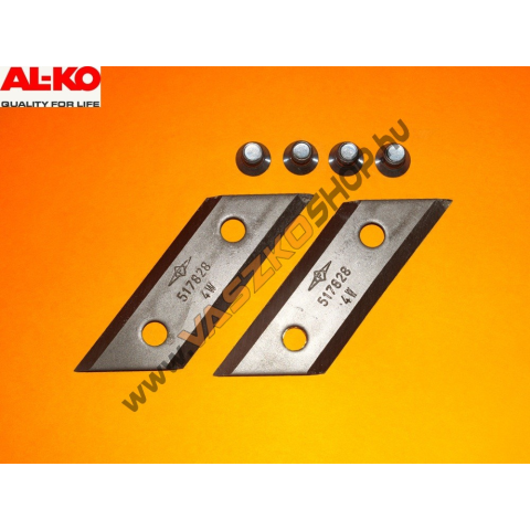 AL-KO New Tech 1400 , New Tech 2500 Elektromos aprító kés készlet , komposztáló kés Gyári cikkszám: 103264 , 325967 , 517828 Az ár egy párra értendő csavarokkal, ahogy a képen látható! Élhossz: 76mm Szélesség: 30mm Furattávolság: 45mm Furat átmérő: 8,6