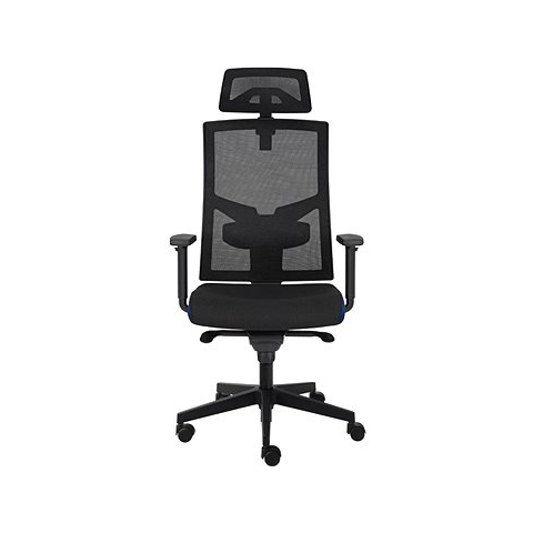 Irodaszék - forgó és ergonomikus szinkron mechanikával, terhelhetősége 150 kg, anatómiailag formázott ülőke állítható ülésmélységgel és magassággal, deréktámasz állítható magassággal, állítható magasságú fejtámla, állítható magasságú háttámla, kartámasz állítható függőlegesen, gumírozott görgők, műanyag konstrukció, huzat anyaga textil és hálós anyag, szélessége 64 cm, tömege 18 kg Hozz létre olyan környezetet, amely lehetővé teszi a hat