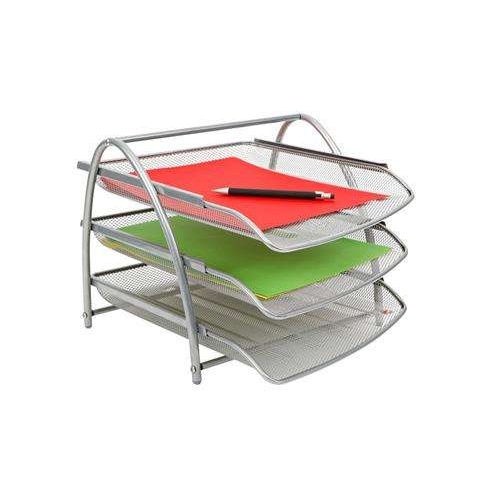 1 kép ALBA Irattálca, fémhálós, 3 részes, ALBA, ezüst