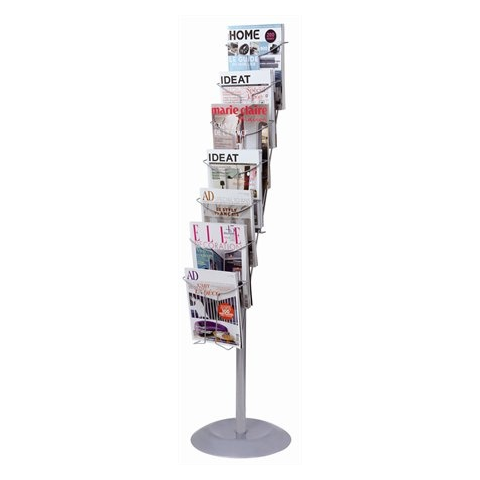 - - erős szerkezetű, stabil fém állvány - A4 méretű dokumentumok számára - polcok kapacitása: 400 lap rekeszek száma: 7 - rekeszek mélysége: 4 cm - szín: fémszürke - magasság: 150 cm - talpátmérő: 38 cm - tömeg: 8,5 kg