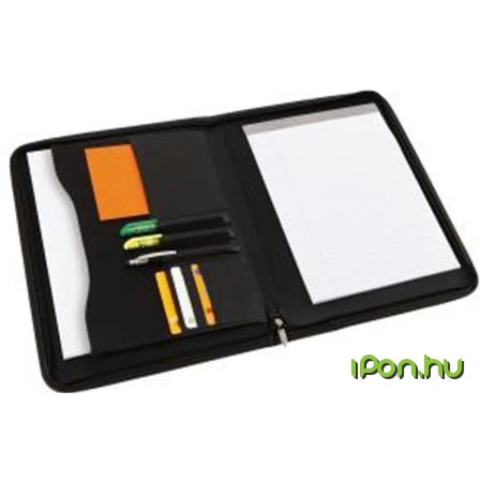- - divatos, műbőr kivitel - cipzárral zárható - jegyzettömb, illetve elkülönítetttárolórekesz a dokumentumok számára - fekete színben - tartozékok nélkül