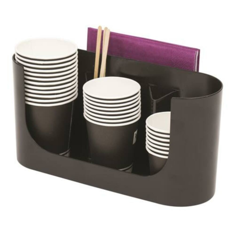 Pohártartó, műanyag, Coffee break, ALBA (KALCUP) Ez a stílusos és kompakt tárolóegység lehetővé teszi a műanyag pohár, keverő és szalvéta könnyű elérését. -funkcionális 3 rekeszes műanyag pohártartó, ami alkalmas a legtöbb szabványos formátumú pohárh