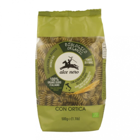 Szárított és porított bio csalánleveleket adnak a tésztához, ami kissé keserűvé teszi. Ezért a csalános spirelli tészta tökéletes szószokkal, illetve vegán ételek készítéséhez kiváló. Összetevők: durum búzadara*, csalán* (2%). *Organikus. Allergének: glut