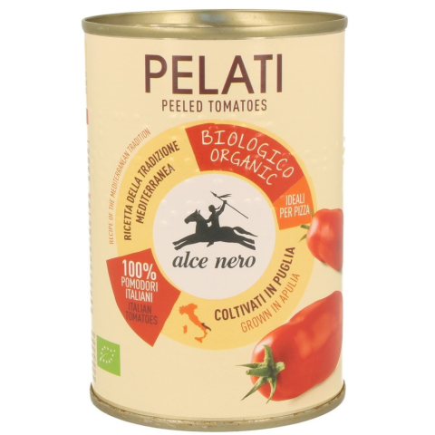 Az Alce Nero bio hámozott paradicsomot az Apulia, Basilicata és Molise régiók termései közül választják ki a terméseket. Abban az esetben szedik le, ha eléri a tökéletes érettségi szintet. Ízvilágával és a friss paradicsom minden zamatosságával minden
