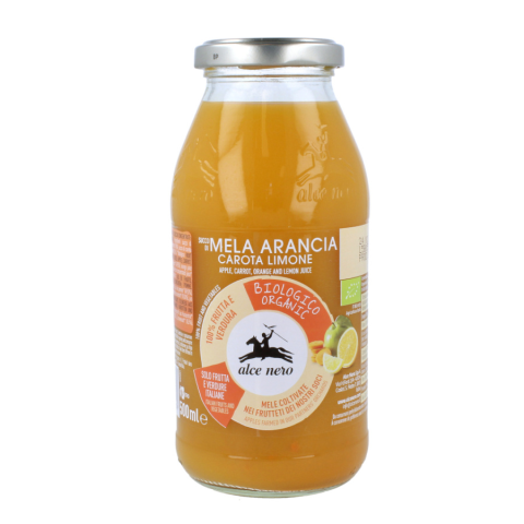 Összetevők: almalé* (49,5%), koncentrátumból származó narancslé (40%), koncentrátumból származó sárgarépalé (10,0%), citromlé (0,5%) *
